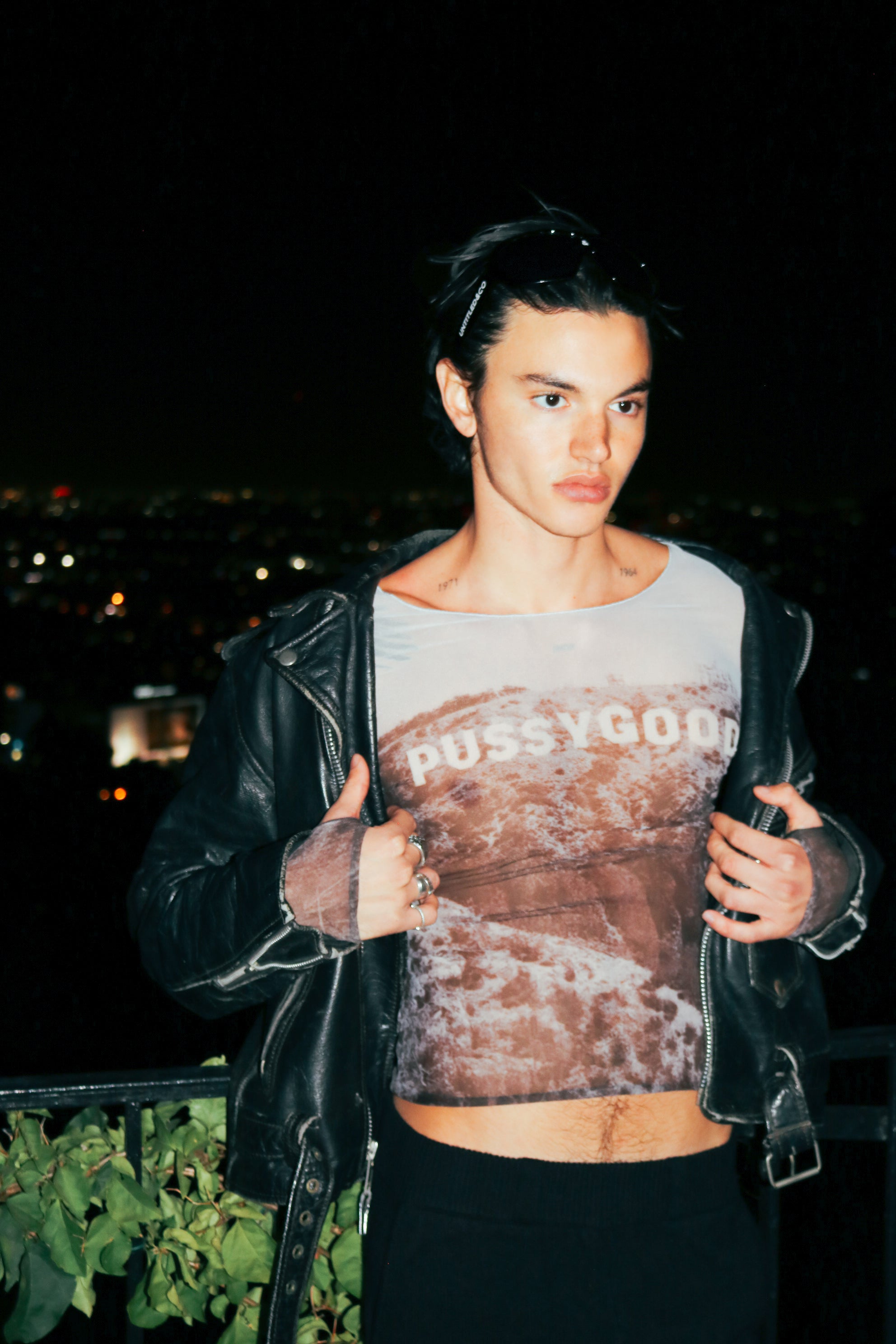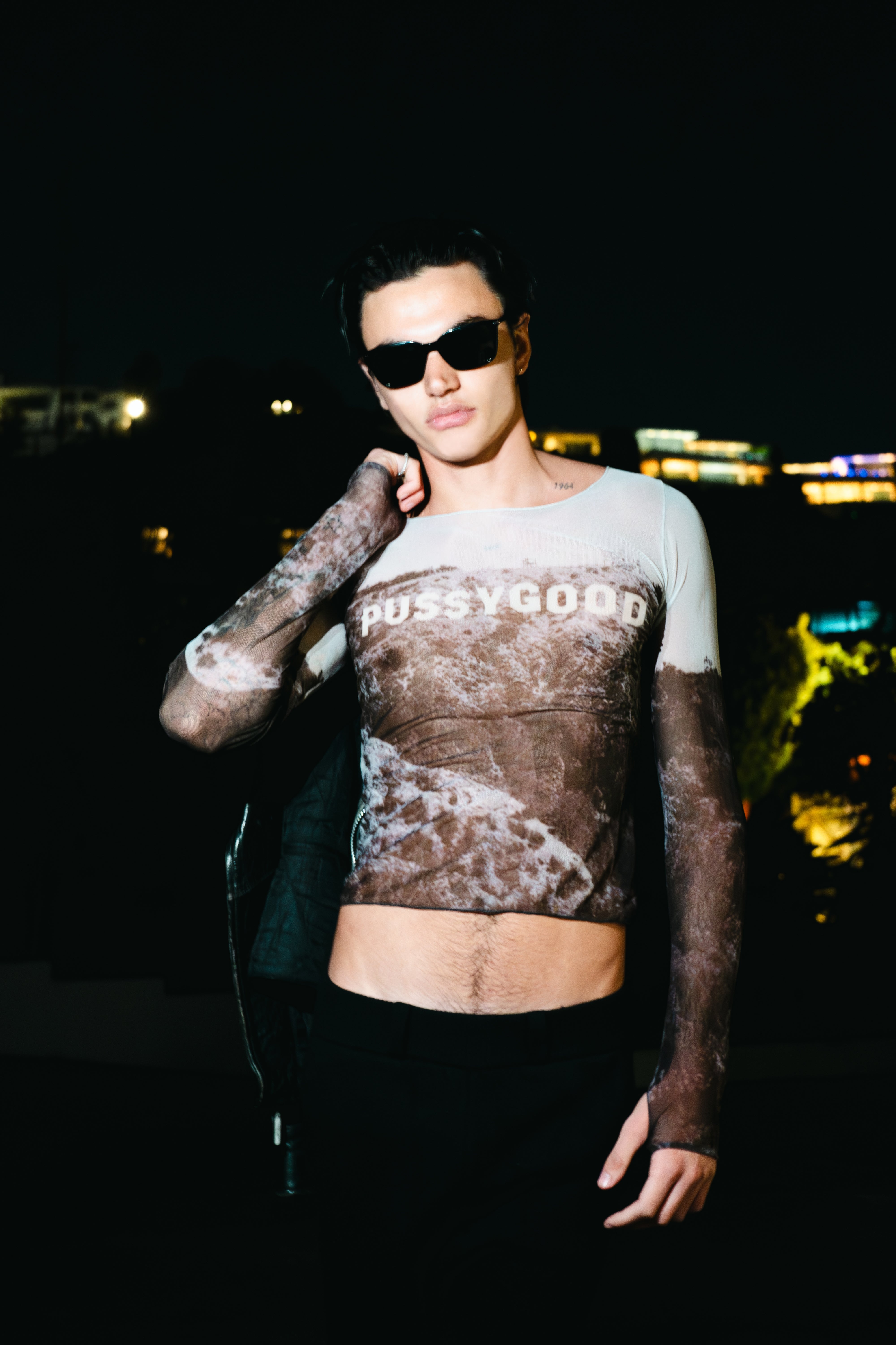 Semi-sheer mesh long sleeve top featuring our allover archival graphic print.