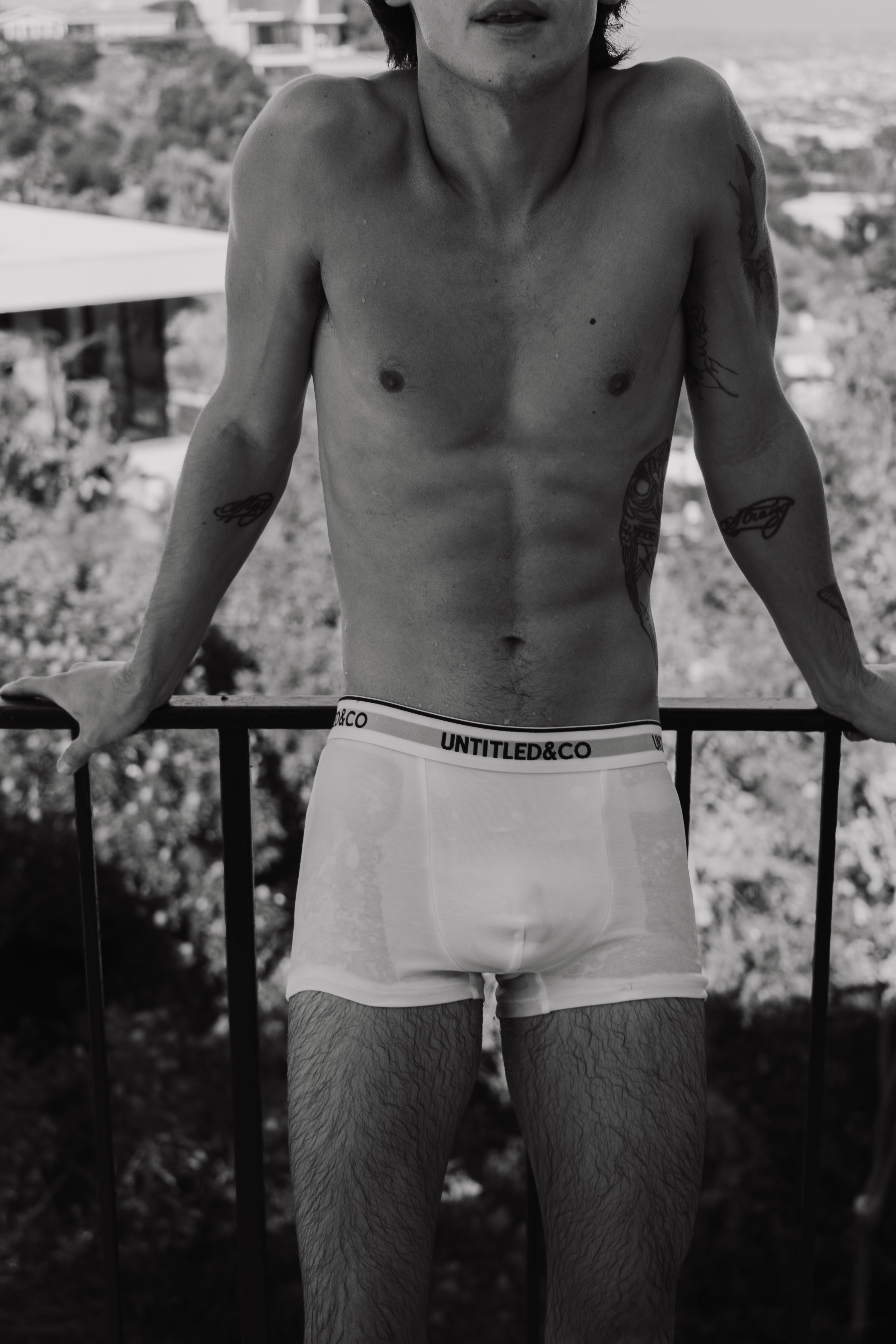 Three-pack of boxer briefs in black, grey, and white. Each pair features a soft elastic waistband with the UNTITLED&CO logo.