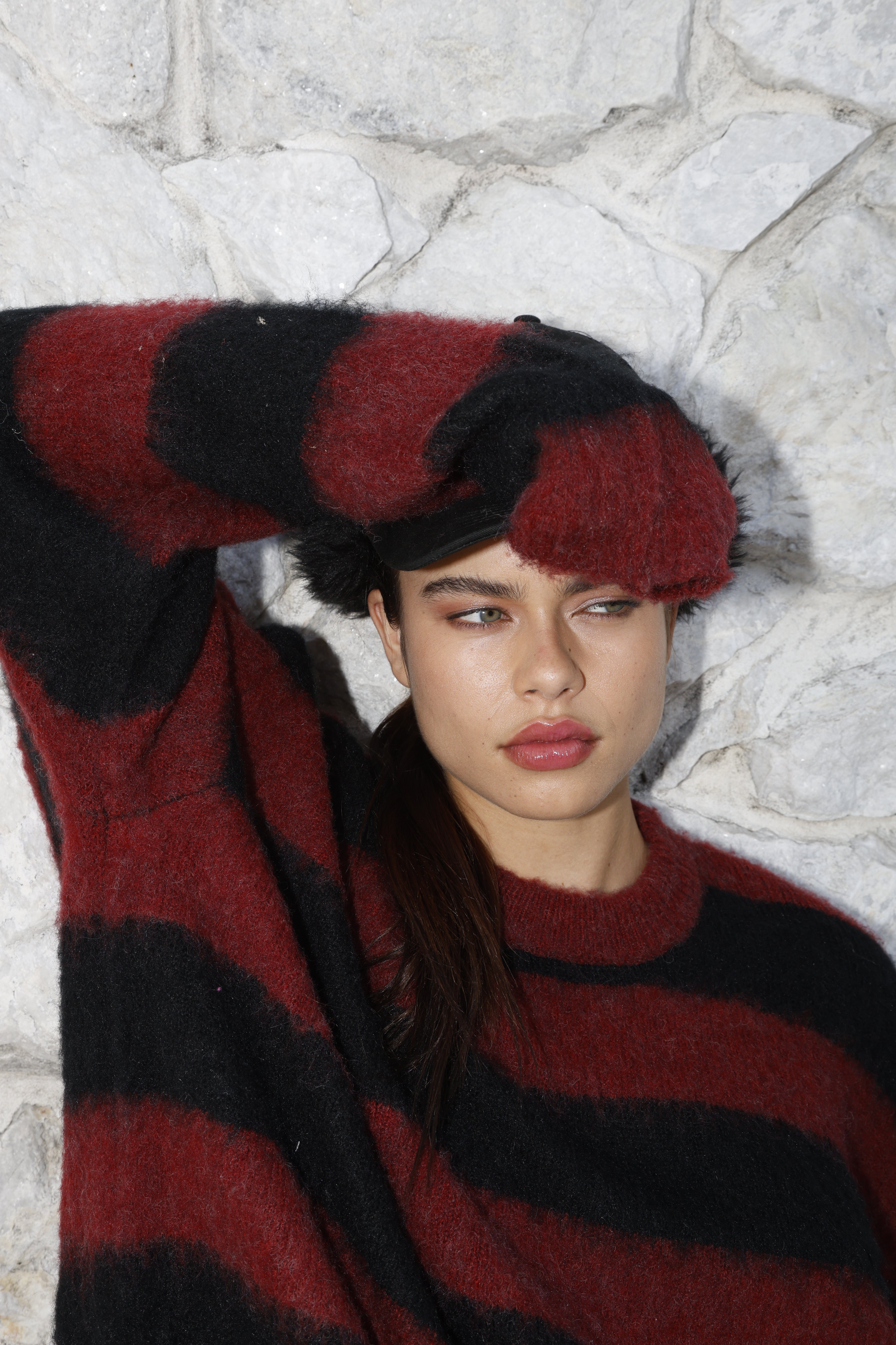 Striped cropped sweater in a mohair wool blend.