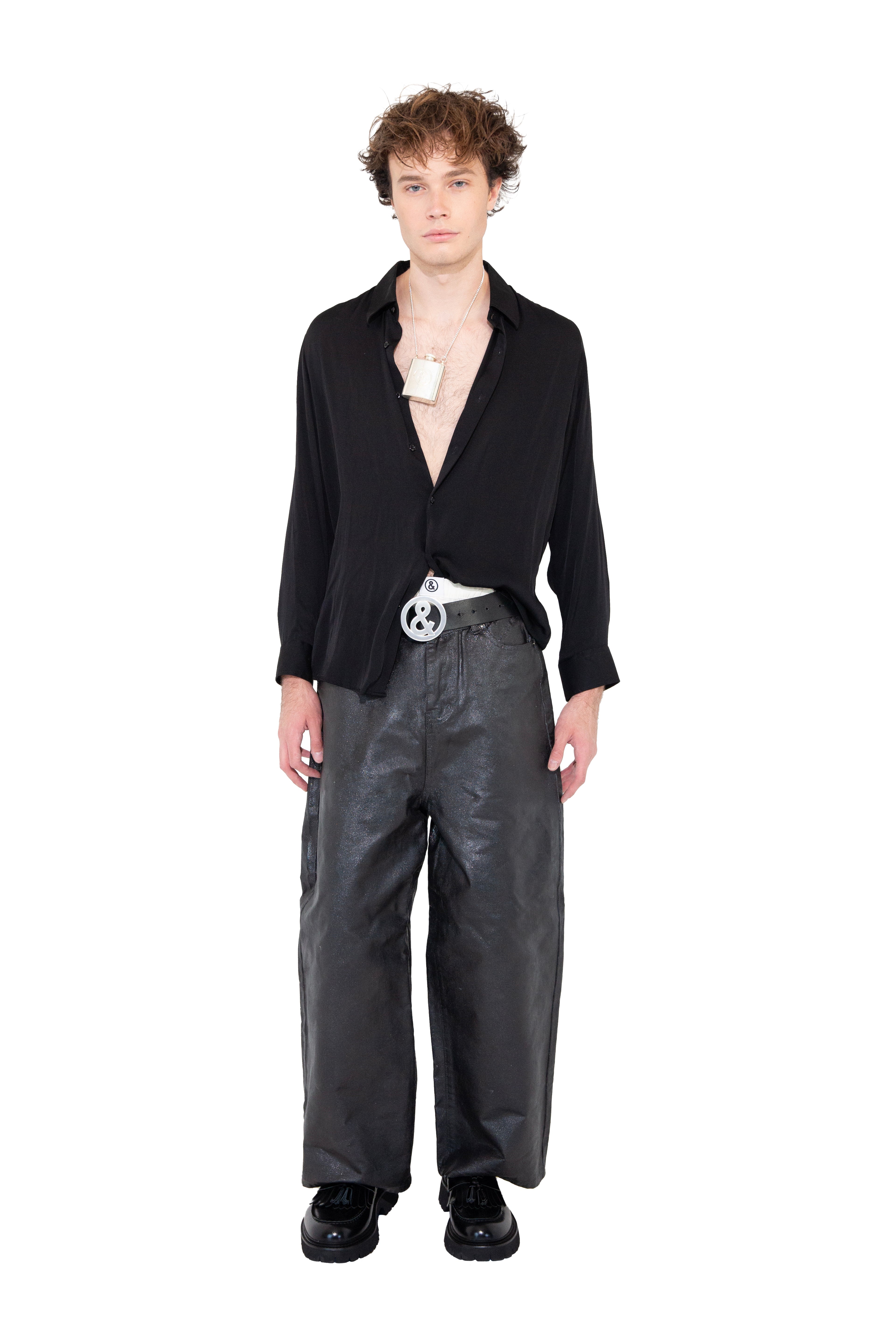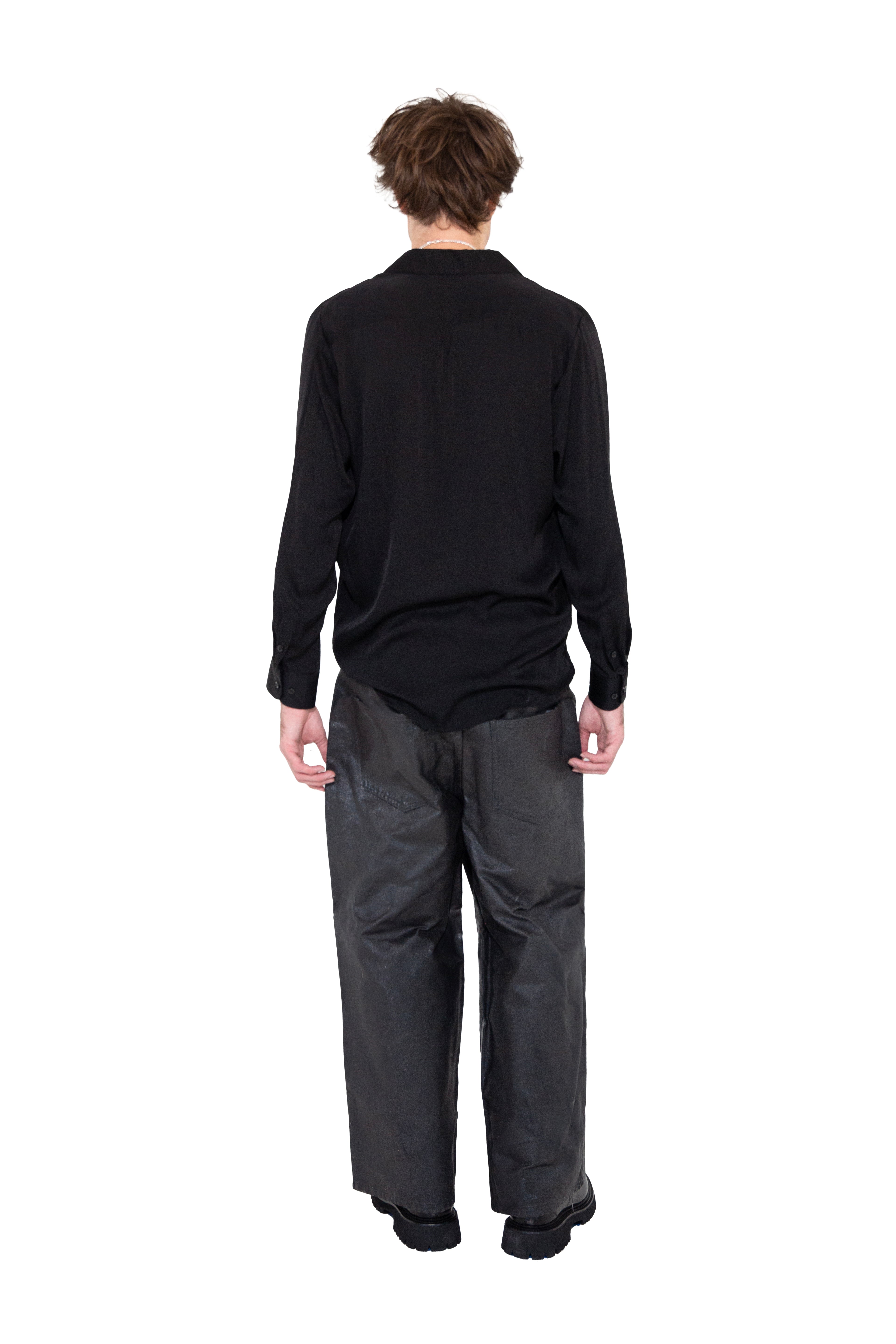 A slim cut button up crafted from 100 percent silk charmeuse. Lightweight with a fluid drape and subtle sheen, finished with a structured collar for sharp contrast. Designed to sit close to the body while maintaining movement. A modern evening staple.
