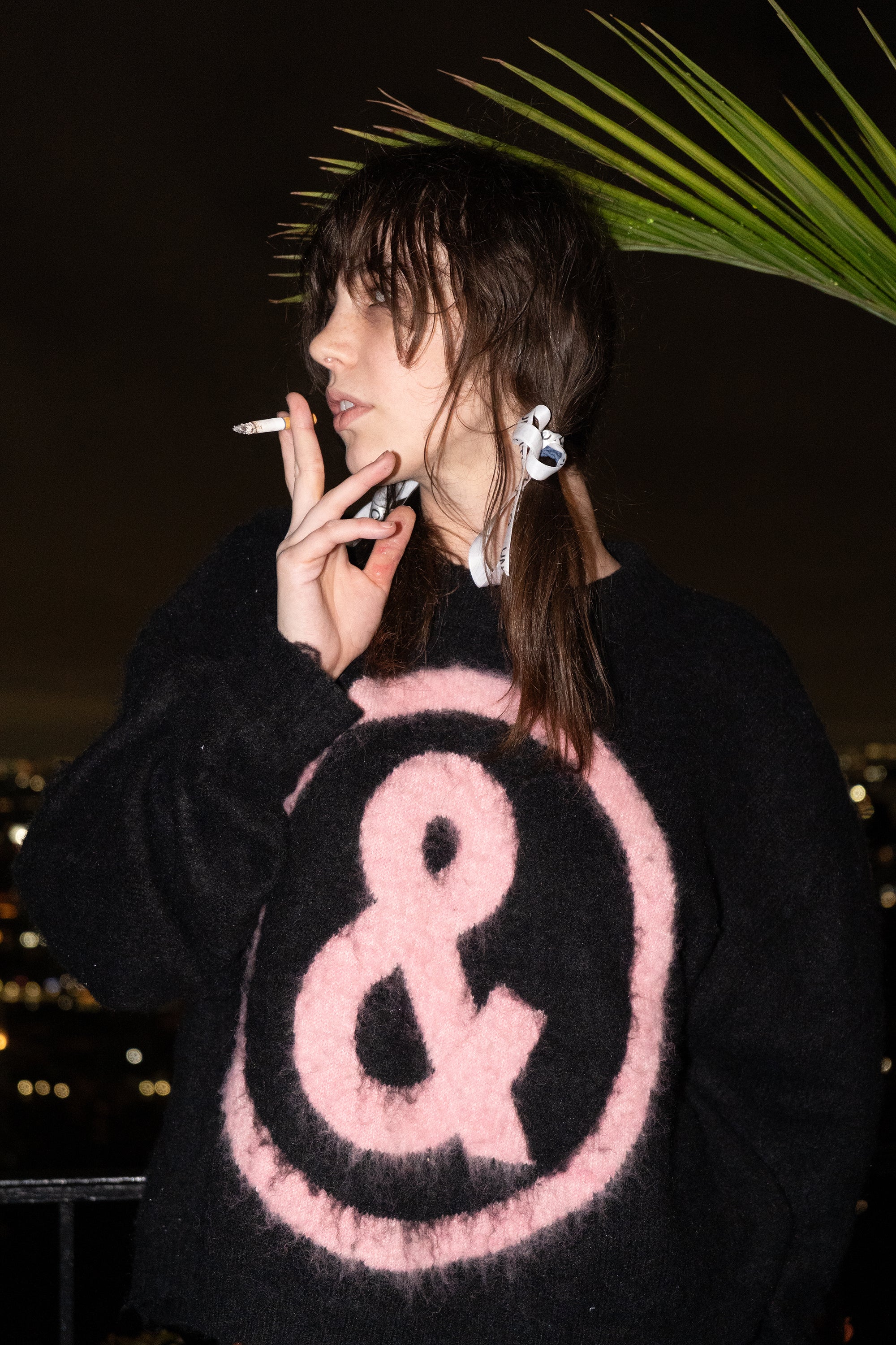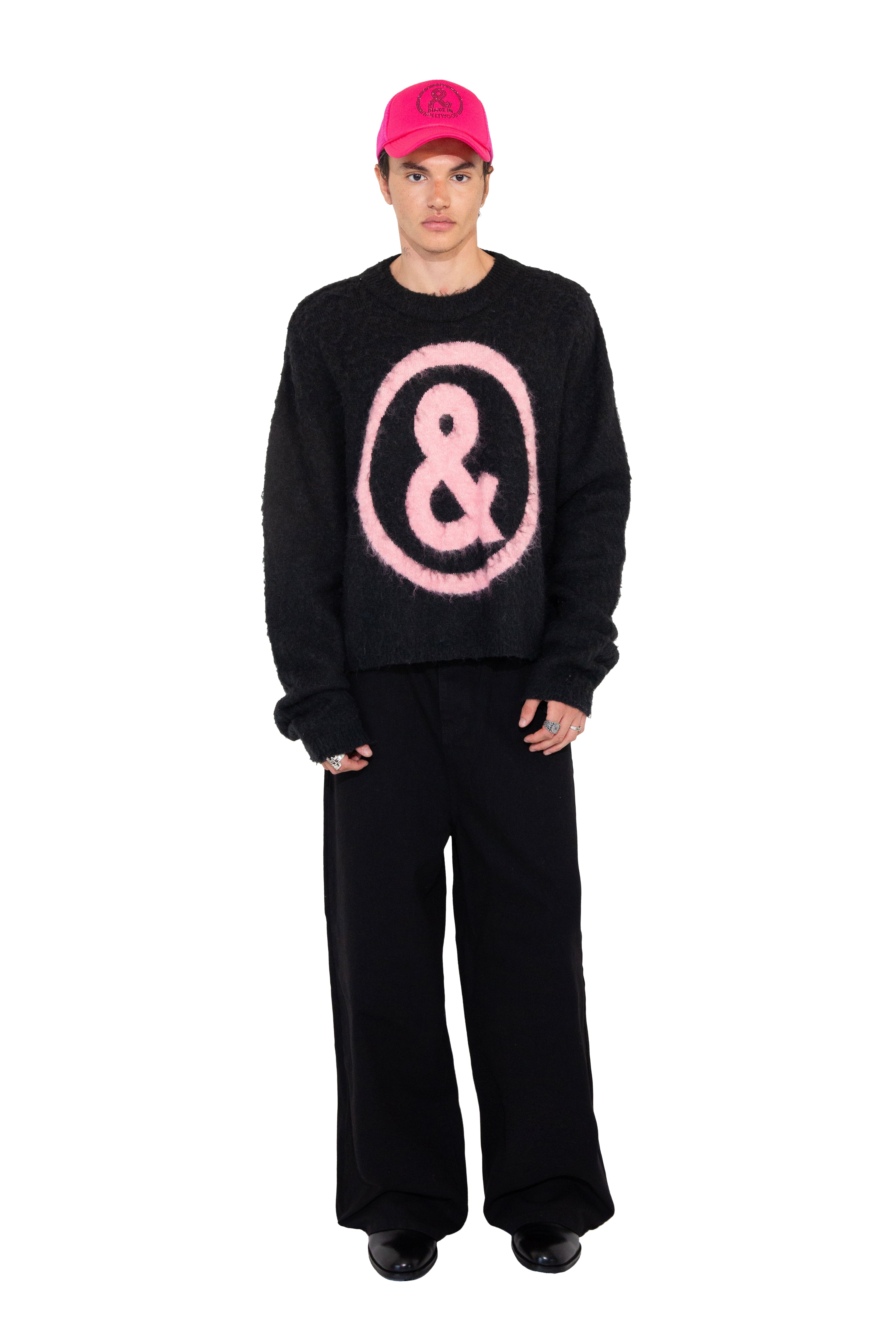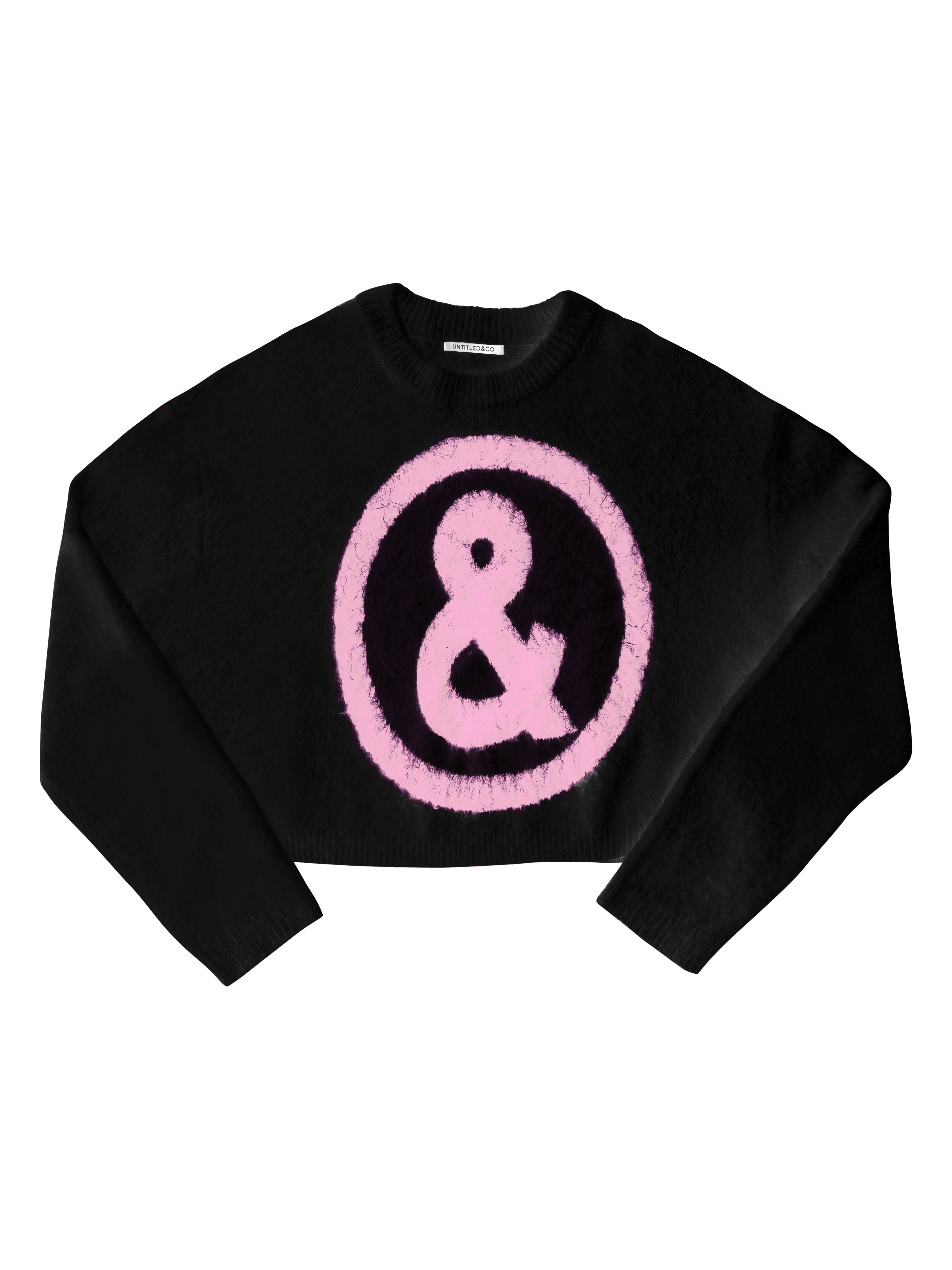 Mohair blend crewneck sweater with an oversized ampersand logo in contrast intarsia. Soft, brushed surface with a relaxed, slouchy fit.